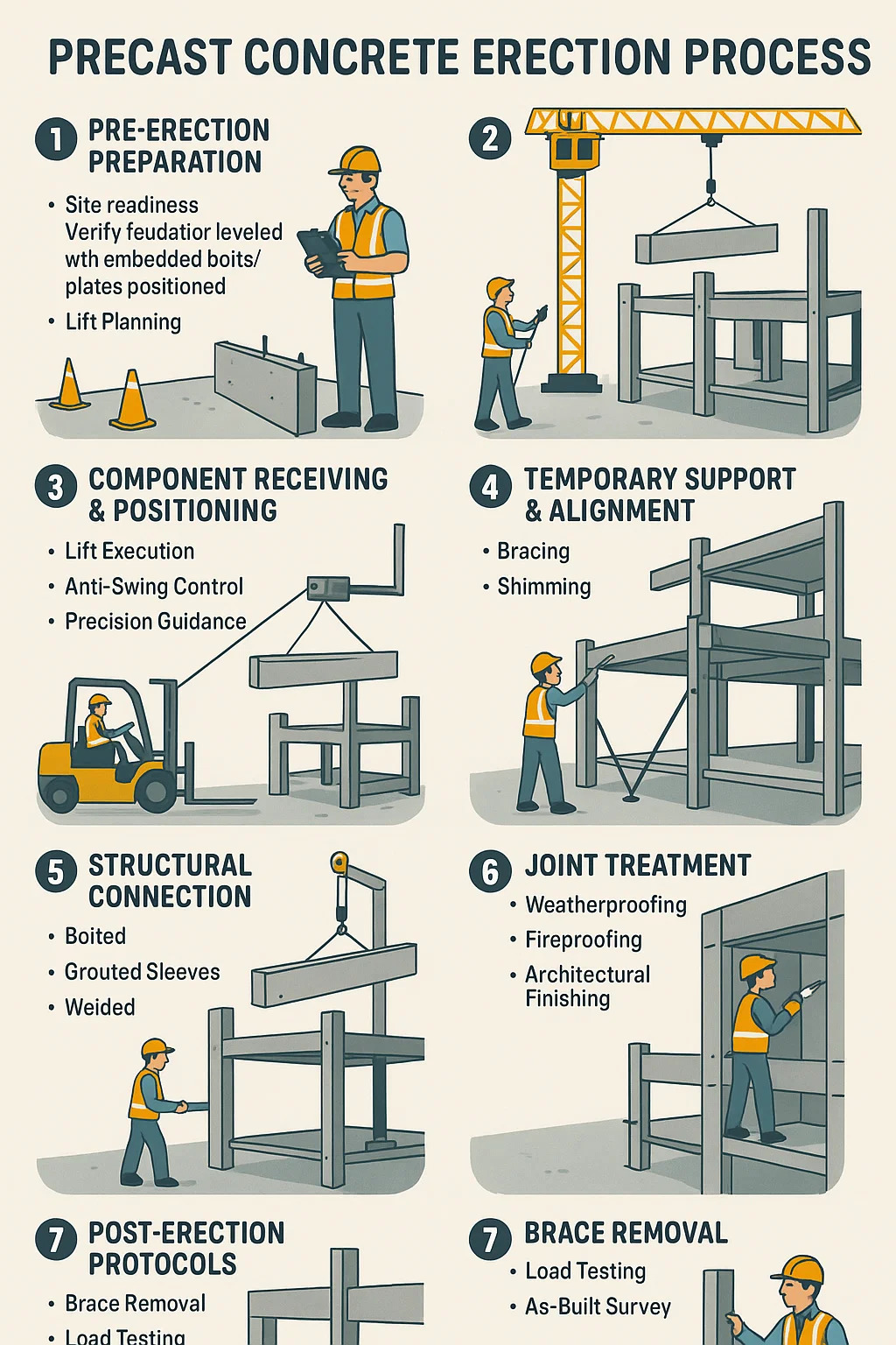 Gotowość placu budowy: Sprawdź, czy fundamenty są wypoziomowane, a osadzone śruby/płytki są prawidłowo ustawione.
